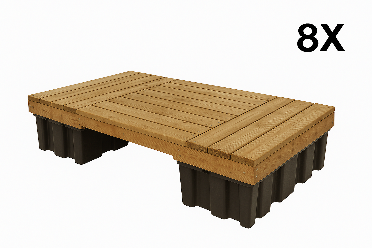 Le Quai 8 comprend huit quais de 8’ x 4’, chacun composé de 2 modules de 4’ x 4’. Grâce à la modularité, assemblez-les facilement en longueur, en largeur ou en grande plateforme. Le quincaillier de raccord est inclus pour garantir stabilité et sécurité.